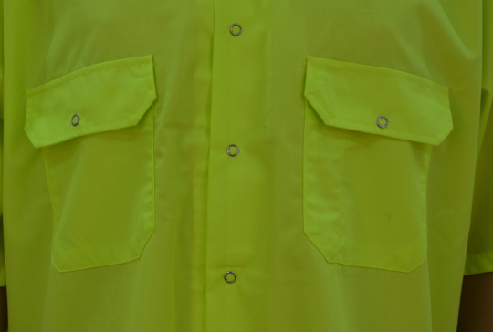 Men's 100%Polyester Poplin Work Shirt Short Sleeve Fluroscent Yellow Metal Snaps Chest Pockets